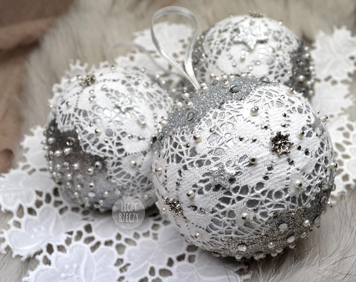 Anna na dziś ma dla Was przepiękne bombki, które możecie wykonać samodzielnie. Wystarczy kawałek koronki, brokat, koraliki, czy świecidełka, które akurat macie pod ręką.