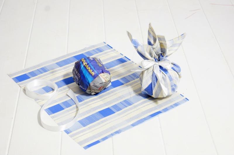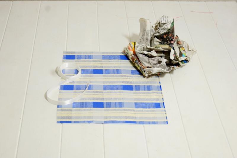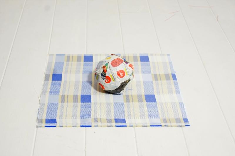 - Przygotuj kształtną kulę z gazety i owiń ją tkaniną.
