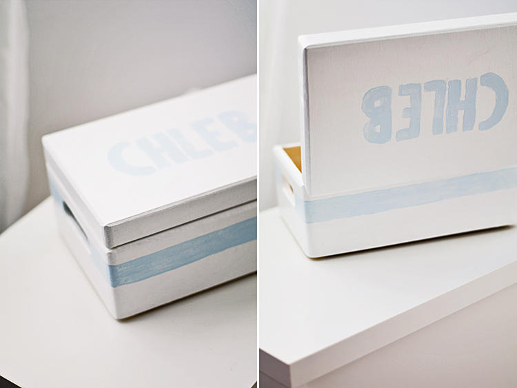Ja tak właśnie zrobiłam. Potrzebowałam szybko ładnego pudełka, a jedyne jakie miałam pod ręką, które mogłabym użyć miało jedną wadę – kiedyś pełniło określoną funkcję i teraz nie mogło mi służyć w ten sam sposób. Był czas, kiedy to moje pudełko było dumnym przechowywaczem pieczywa, a teraz miało być piękne, ozdobne i na pewno bez napisu CHLEB na wierzchu. Znana wszystkim mądrość „potrzeba matką wynalazku” sprawdziła się i tym razem. Czasu mało, wiec szybka metamorfoza trwała całe 10 min:)