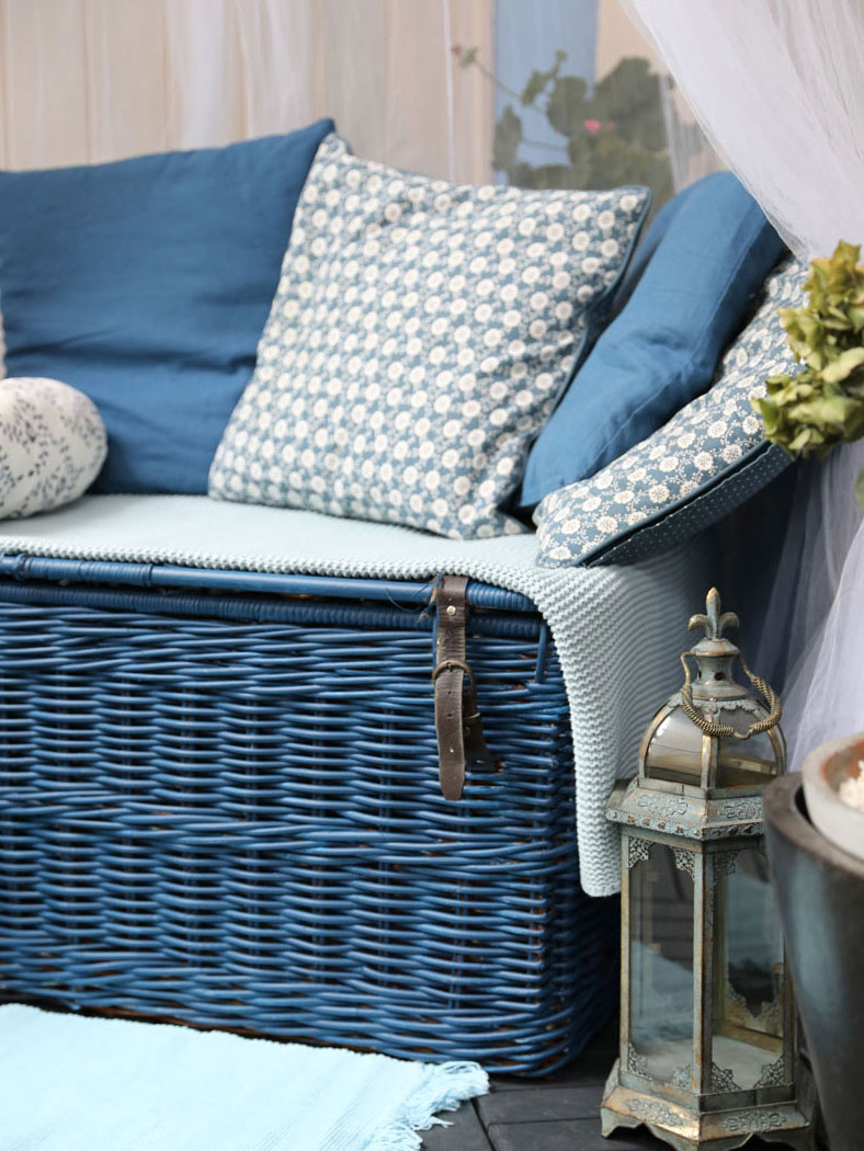 Współczesne balkony to coraz częściej przedłużenie mieszkania, małe oazy spokoju, które tak samo jak inne części wnętrza wymagają estetycznej oprawy. Na co zwrócić uwagę przy aranżacji, szczególnie, jeśli balkon ma spełniać, zarówno reprezentacyjne, jak i praktyczne funkcje? Ważne, aby meble, kolory oraz dodatki były spójne pod względem barwy i stylistyki. Jeśli zdecydujemy się na wprowadzenie wakacyjnego klimatu ze słonecznych wysp greckich, pamiętajmy o charakterystycznej gamie kolorystycznej, naturalnych materiałach. Stara, urokliwa wiklinowa skrzynia może również stać się ciekawym elementem takiej aranżacji, jeśli użyjemy odpowiedniej emalii do jej odnowienia.