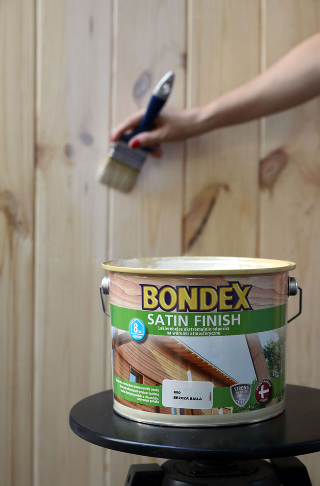 Do metamorfozy balkonu w greckim klimacie potrzebne będą odpowiednie farby oraz produkty do ochrony drewna. Co to znaczy? W przypadku drewna, eksponowanego na zewnątrz, wymagane są odpowiednie preparaty zabezpieczające je przed m.in. grzybami, pleśnią, promieniami UV, wodą. Świetnie nadaje się do tego lakierobejca marki Bondex, Satin Finish, która przeznaczona jest do konserwacji i zdobienia wszelkich konstrukcji i elementów drewnianych na zewnątrz. Zapewnia doskonałą ochronę drewna, zarówno przed warunkami atmosferycznymi (promieniami UV, wodą), jak i działaniem szkodników (grzybami, pleśnią). Tworzy gładką powłokę o satynowym połysku, która nie łuszczy się i nie pęka oraz jest wysoce odporna mechanicznie. Zapewnia ochronę drewna do 8 lat. Co ważne, lakierobejca Bondex Satin Finish posiada właściwości dekoracyjne, dzięki czemu mamy szansę uzyskać wymarzony kolor drewnianej konstrukcji i efekt wizualny całej aranżacji. Produkt dostępny jest w 12 kolorach, w tym w odcieniu Brzozy Białej, która po dwóch warstwach nadaje drewnu, biały, szlachetny odcień, tak bliski czystej estetyce i naturalnemu pięknu greckich tarasów.