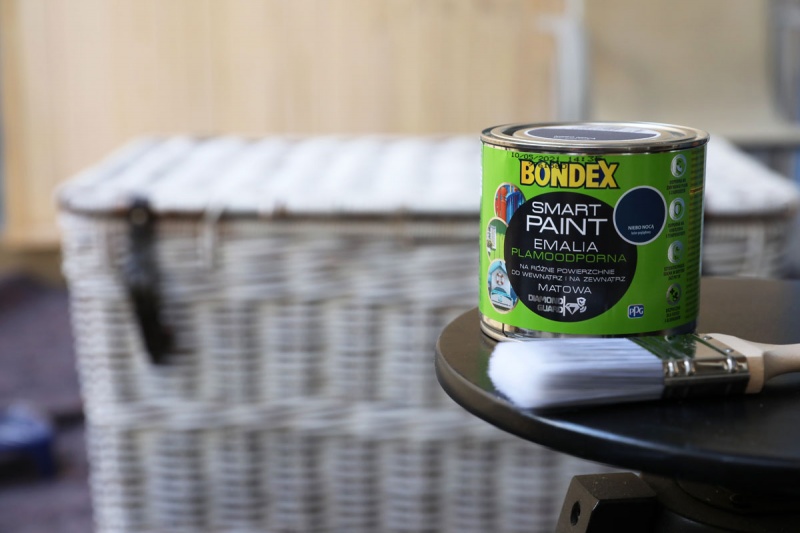 Do malowania mniejszych elementów i różnego rodzaju powierzchni, takich jak, drewno, fornir, płyty MDF laminowane, sklejka, wiklina, metal świetnie sprawdzi się emalia Bondex Smart Paint Emalia Plamoodporna. Dostępna w palecie 25 kolorów, nada naszemu kuferkowi nowe życie. Do wyboru ciemne granaty, (Niebo Nocą), głębokie błękity (Niebieskie Migdały), szlachetne szarości (O wilku Mowa). Emalia jest bardzo przyjazna w codziennym użytkowaniu. Posiada szybki czas schnięcia (sucha w dotyku już po 1 godzinie), ma delikatny, niedrażniący zapach. Bezpieczna dla dzieci i alergików.