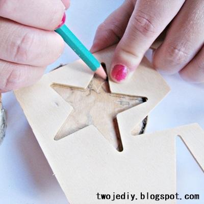5. Narysuj gwiazdki ołówkiem na drewnie.