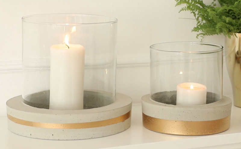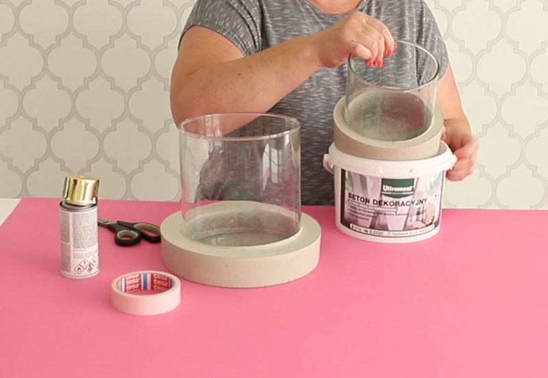 5. Wyciągnij szkło z wiaderka i przystąp do dekorowania świecznika. Brzegi wygładź korzystając z kostki ściernej, a sam beton ozdób, np. przy pomocy złotego sprayu.