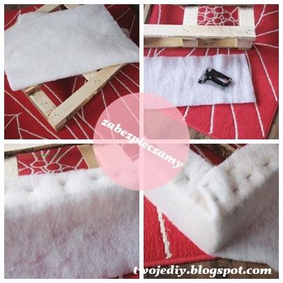 2. Kolejny krok to obłożenie boków palety watoliną, aby pufa była miękka.