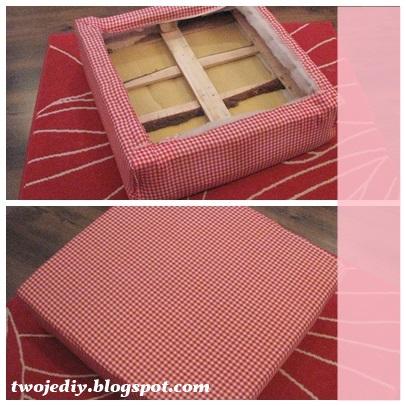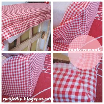 4. Za pomocą zszywacza tapicerskiego przymocowałam tkaninę do konstrukcji.