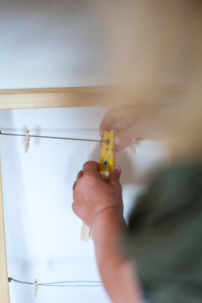 5. Zawieszamy potrzebną ilość spinaczy na sznurkach.