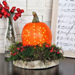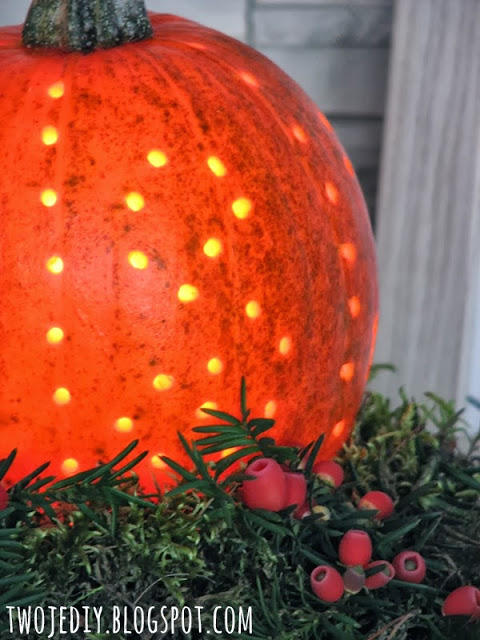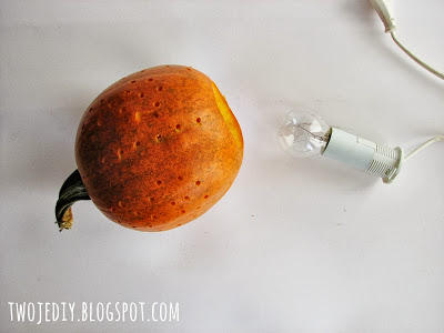 Wieczorem lampka z dyni wygląda niesamowicie. Żarówka prześwieca ją na wylot, efekt jest znakomity.