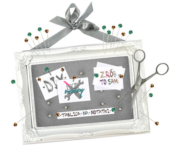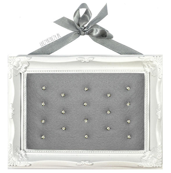 Chyba każda kobieta lubi być dobrze zorganizowana i mieć wszystko pod kontrolą. Jednak z natłoku codziennych spraw nietrudno o czymś zapomnieć. Świetnie znane, samoprzylepne karteczki sprawiają się całkiem nieźle jako małe 'przypominajki’, jednak już sam ich wygląd jest nieco odstraszający. Agresywny, najczęściej żółty kolor, aż krzyczy ile to jeszcze mamy do zrobienia. Nieco stresujące prawda? Anna postanowiła więc, by jej mini tablica informacyjna zdobiła zamiast odstraszać. Notatki wbite błyszczącymi szpilkami do pikowanej ramki w stylu Shabby Chic przyozdobionej cyrkoniami i zawieszonej na ścianie satynową wstążką nawet karteczce z napisem 'kupić masło, bułki, chleb, ogórki’ nadadzą klasy.