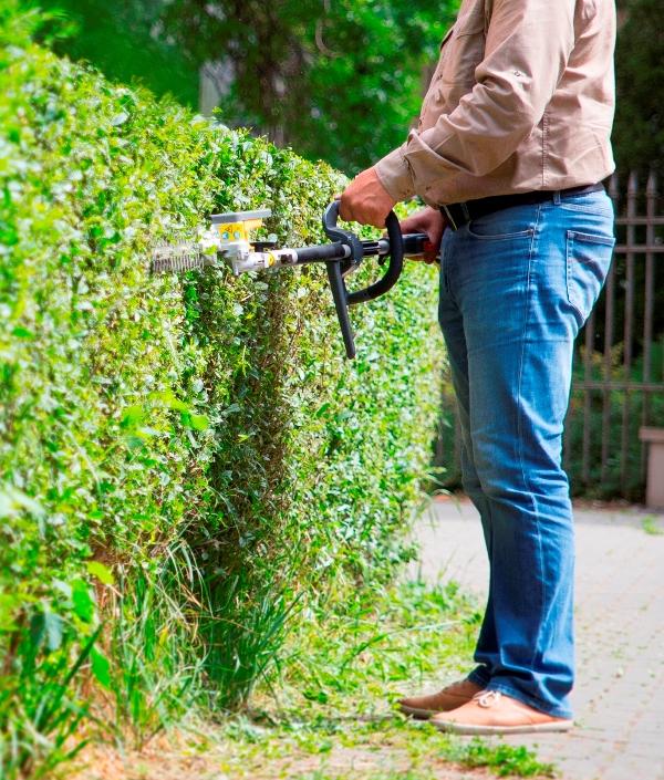 Do formowania i odmładzania żywopłotów można użyć tego samego narzędzia – Honda Versatool. Wystarczy zamienić podkrzesywarkę na nożyce: krótkie lub długie. Nożyce krótkie SSHE SE o dwustronnym ostrzu długości 55 cm sprawdzają się w przycinaniu gałązek o średnicy do 1,5 cm. Regulacja kąta pracy (54°) zapewnia wygodę i łatwość prawidłowego przycinania krzewów. Do przycinania gałązek o większej średnicy – do 2,4 cm służą nożyce długie SSHE LE o dwustronnym ostrzu długości 105 cm z przedłużką. Szeroki zakres rozstawu kąta (90°) pracy zapewnia precyzyjne formowanie wyższych partii krzewów w każdej płaszczyźnie.