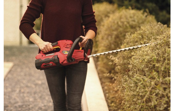 Inną wygodną opcją formowania żywopłotów i krzewów jest „cicha energia” bez spalin czyli akumulatorowe nożyce Honda HHHE 61 LE. Jest to dwustronne stalowe ostrze 61 cm do przycinania gałązek o średnicy do 22 mm zasilane akumulatorem o napięciu 56V. Dobre wyważone, lekkie i wyposażone w ergonomiczny uchwyt są łatwe w obsłudze i przycinaniu w każdej płaszczyźnie i pod każdym kątem. Zapewniają pełną swobodę pracy. Bezpieczeństwo pracy zapewnia przycisk hamulca zatrzymujący ostrze natychmiast po wyłączeniu silnika. Akumulator (standardowy lub wzmocniony) jest ładowany ładowarką standardową lub szybką (ładowarka szybka ładuje akumulator standardowy do 25 min., a wzmocniony – do 30 min.). Akumulator jest wymienną jednostką napędową, która zasila także wykaszarkę i dmuchawę.