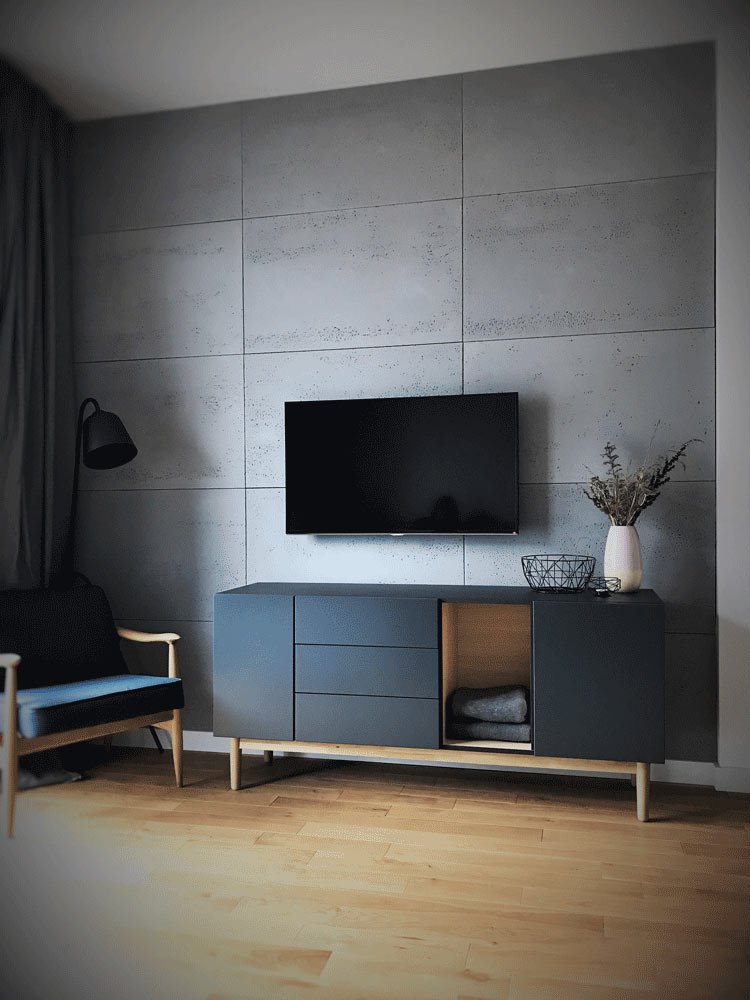 Płyty z betonu architektonicznego w salonie