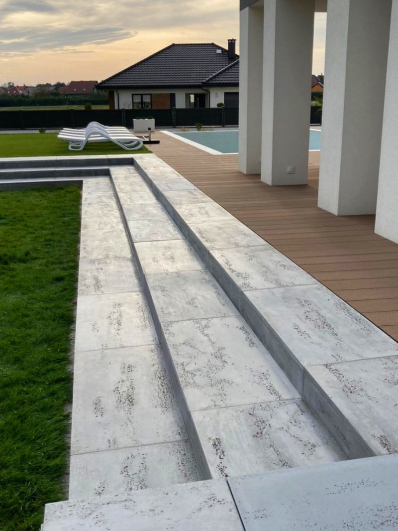 Coraz częściej płyty z betonu architektonicznego stosowane są na elementach zewnętrznych, takich jak ogrodzenia czy schody, a nawet na całych elewacjach domów oraz budynków publicznych. Dzięki niezastąpionym właściwościom materiału płyty są odporne na szkodliwe działania promieni słonecznych, niekorzystne warunki pogodowe, a także na mróz i ogień. Beton architektoniczny Creative Concrete® charakteryzuje się brakiem wykwitów oraz korozji betonowej, zapewniając niezawodną trwałość oraz ponadczasowy wygląd okładziny.