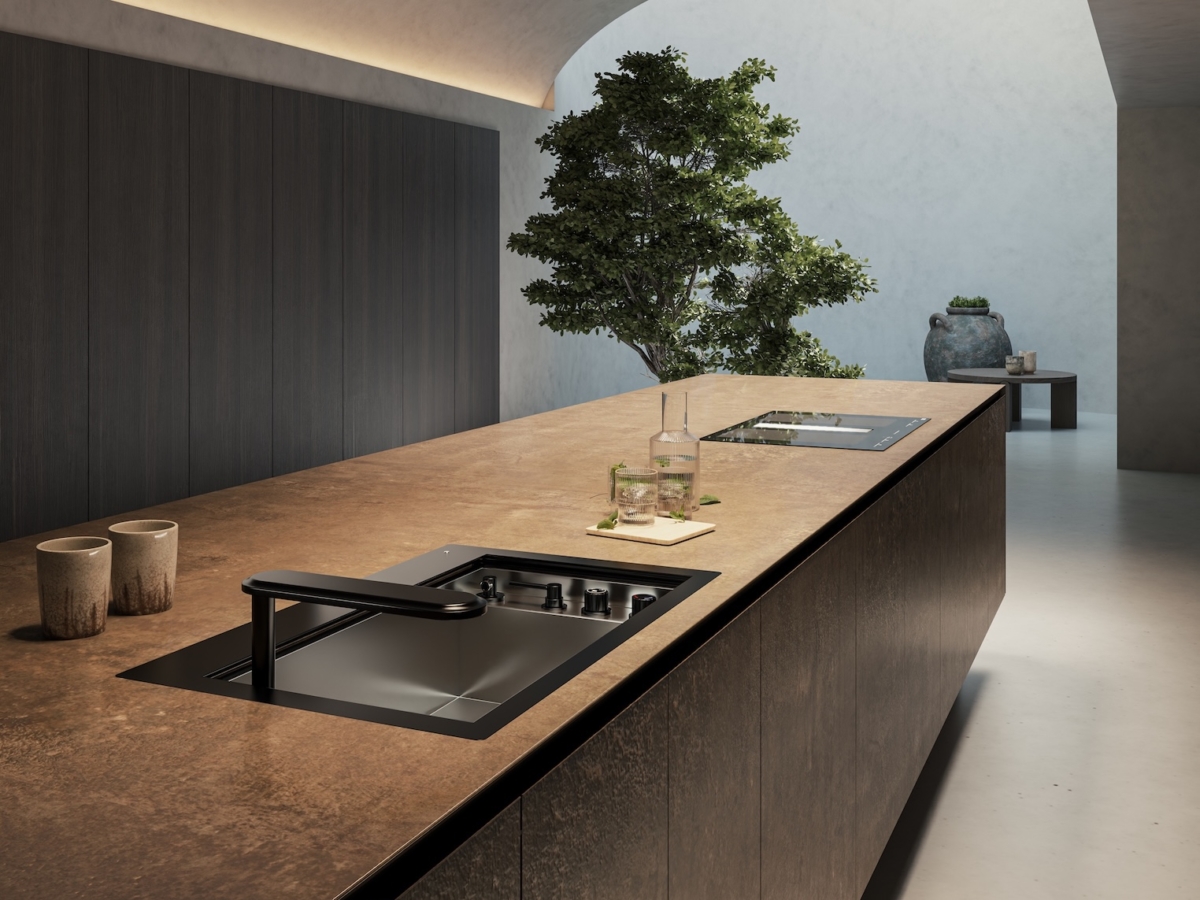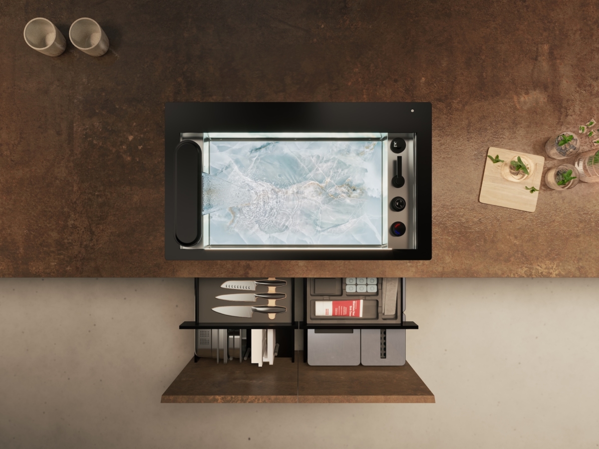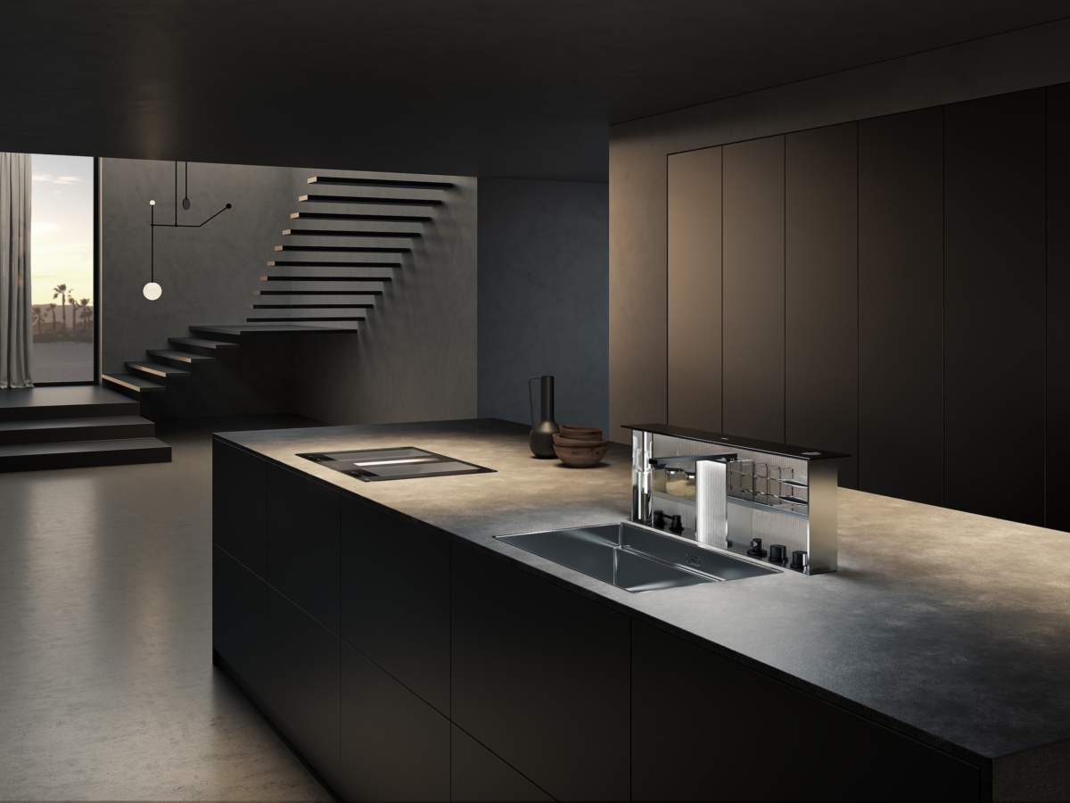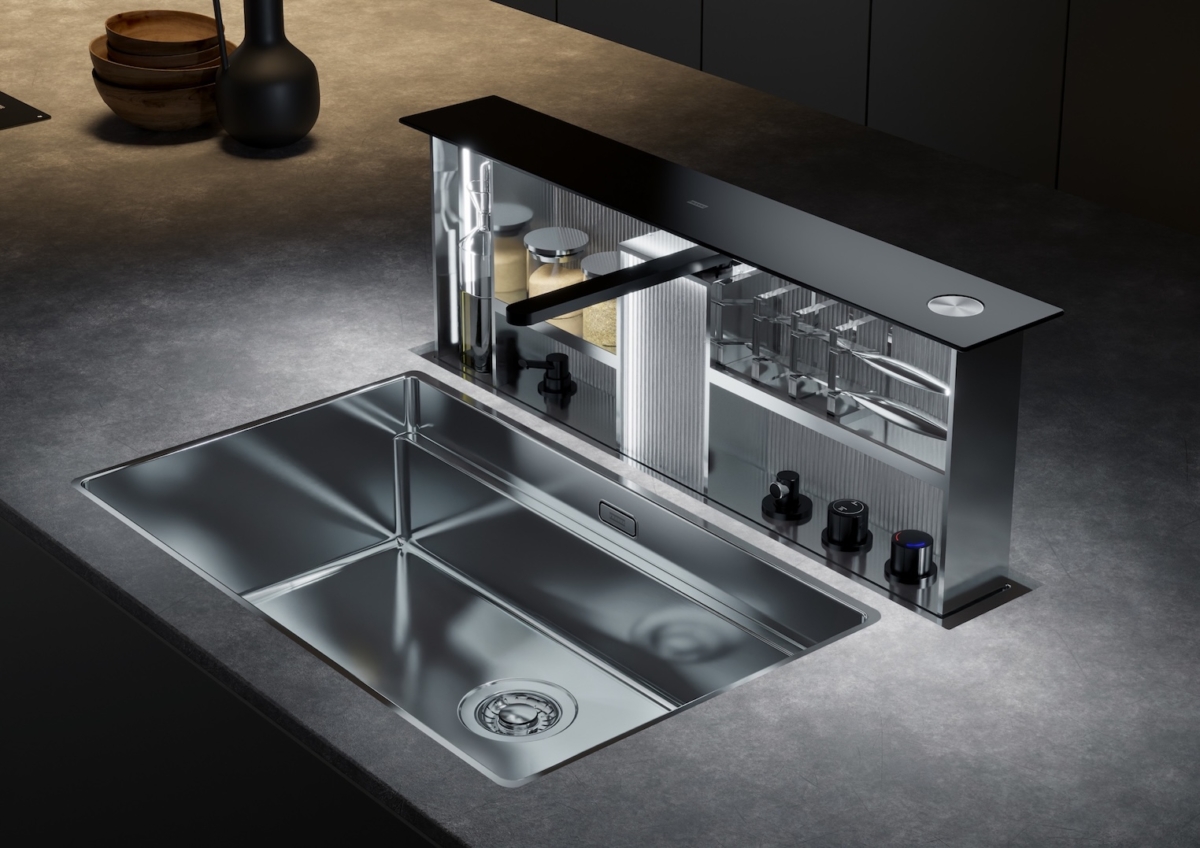 W strefie wody szwajcarska marka premierowo zaprezentowała wielofunkcyjne zlewozmywaki Mythos Supernova i Mythos Atlantic, zaprojektowane jako centrum operacyjne kuchni. Oba rozwiązania redefiniują tradycyjną strefę zlewozmywaka, przekształcając ją ze statycznego elementu kuchni w dynamiczny, wielofunkcyjny system zintegrowany z architekturą blatu. Mythos Supernova opiera się na koncepcji „On/Off”. W trybie „Off” zlewozmywak znika pod sterowaną elektronicznie aluminiową kratką, wtapiając się w zabudowę kuchenną. Mythos Atlantic rozwija inną ideę. Jego najważniejszym elementem jest wysuwany moduł z obrotową baterią, który wysuwa się z blatu tylko wtedy, gdy jest potrzebny. Oba produkty odpowiadają na potrzeby współczesnych kuchni premium: minimalizmu, personalizacji, ukrytej technologii, optymalizacji przestrzeni i większego komfortu codziennego użytkowania. Franke pokazuje strefę zlewozmywaka jako centrum pracy z wodą, światłem i akcesoriami.