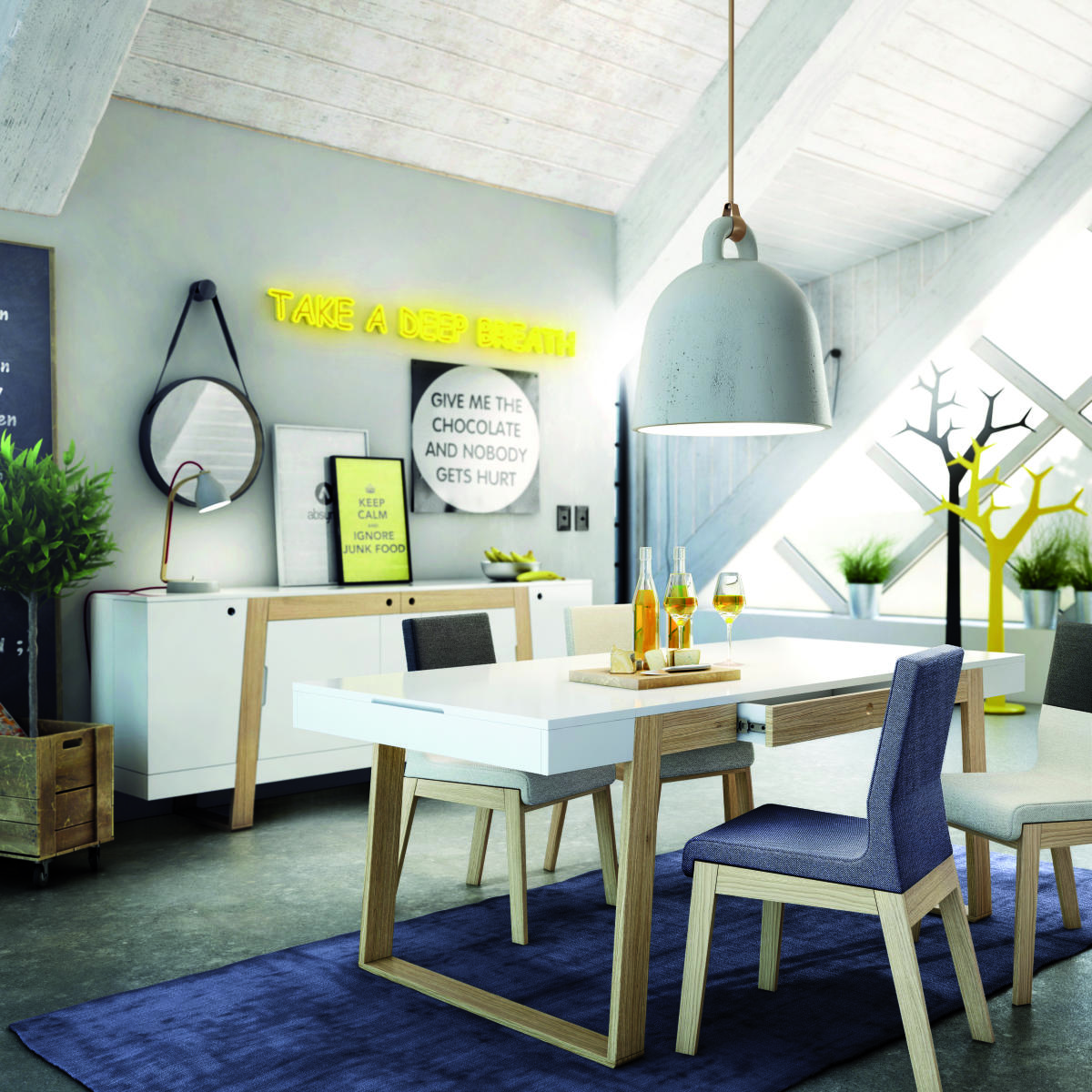 Stonowany krajobraz Szwecji, skąd nurt się wywodzi, oraz ograniczona ilość światła dziennego na północy Europy zdeterminowały maksymalne wykorzystanie go poprzez zastosowanie jasnych barw, odsłoniętych, dużych okien, naturalnych materiałów. Tak narodziło się umiłowanie prostoty i przejrzystości ochoczo zapożyczone przez inne kraje Starego Kontynentu. Wprowadzając do wnętrz powiew Skandynawii, należy pamiętać o kilku zasadach. Kolorem dominującym jest biel. Przełamana odcieniami szarości, błękitu czy grafitu tworzy tło dla minimalistycznych, często drewnianych mebli i ascetycznych dodatków. Ważny element skandynawskiej układanki stanowi podłoga. Jasna, naturalna, nierzadko bielona, jednak zawsze drewniana. Czasami obok drewna na samej podłodze pojawiają się również drewniane bielone sufity czy nawet całe ściany, tworząc spójną, oryginalnie prezentującą się całość. Nie mniejszą wagę należy przyłożyć do dodatków. Mimo ograniczonej ilości wypełniają jasne pomieszczenia ciepłem, stanowią o ich charakterze. Len, wełna i bawełna to tkaniny najczęściej spotykane w skandynawskich wnętrzach. Zestawione z wikliną, metalem oraz wszechobecnym drewnem tworzą ciekawe i funkcjonalne dopełnienie. Co ważne, styl skandynawski nie zamyka się w sztywnych ramach – ciągle ewoluuje, czerpie z trendów, chłonie elementy innych stylów. Dzięki temu wnętrza wzbogacane są o industrialne lampy czy fotel w stylu vintage. Surowość elementów przełamują ciepłe plecione pledy, dekoracyjne poduszki czy typografia na ścianie. Na fenomen stylu skandynawskiego wypływa fakt, że niewielkim nakładem środków, nierzadko przy wykorzystaniu własnych zdolności manualnych, możemy często zmieniać aranżacje, a nasz dom ciągle będzie przestronny i modny.