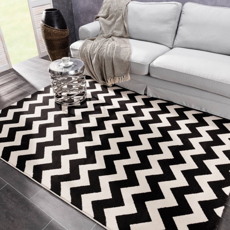 - wybierz jeden mocny akcent – przykładowo na dywanie. To dobry sposób na niewielką, ale odważną zmianę dekoracji we wnętrzu, która przykuje wzrok. Doskonale sprawdzi się w tym wypadku dywan o wyraźnym wzorze i kontrastujących ze sobą kolorach – szczególnie jeżeli aranżacja utrzymana jest w jednolitych barwach. Jeśli zainspirowało Cię to rozwiązanie, możesz zdecydować się na przykład na dywan Modern Zygzak w biało-czarny wzór.
