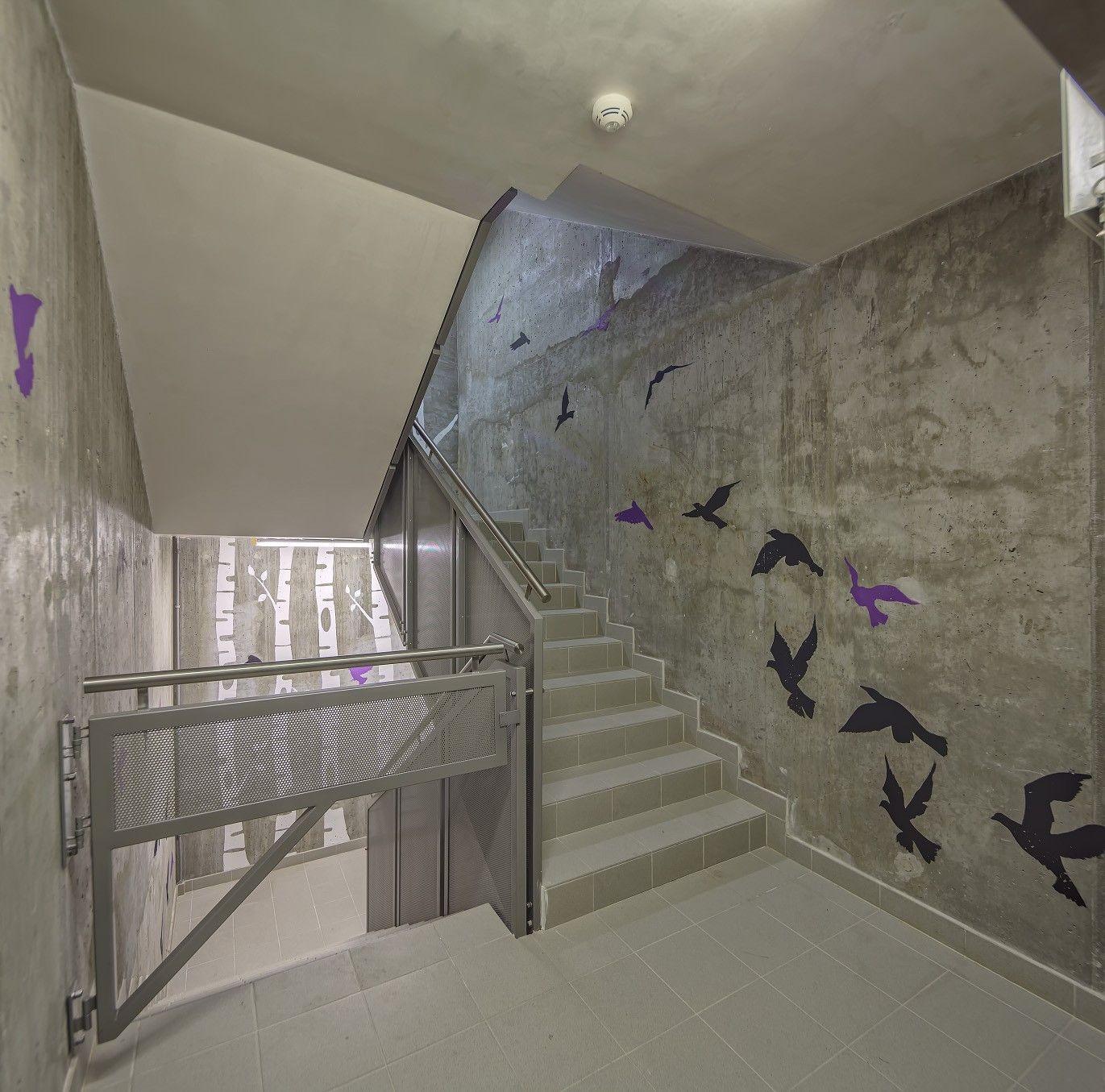 Coraz częściej myśląc o osobistym azylu wykraczamy poza granice własnego M. W nowoczesnych budynkach mieszkalnych części wspólne zyskują specyficzną dla danego miejsca osobowość, oddają charakter lokalnej wspólnoty, a czasem stają się także przestrzenią dla nietuzinkowych rozwiązań. Przykładem nieszablonowego podejścia do aranżacji części wspólnych jest oryginalny, utrzymany w koncepcji loftów kompleks Woronicza Qbik, w którym ściany klatek schodowych pracownia Muralist zmieniła w street-artowe murale.