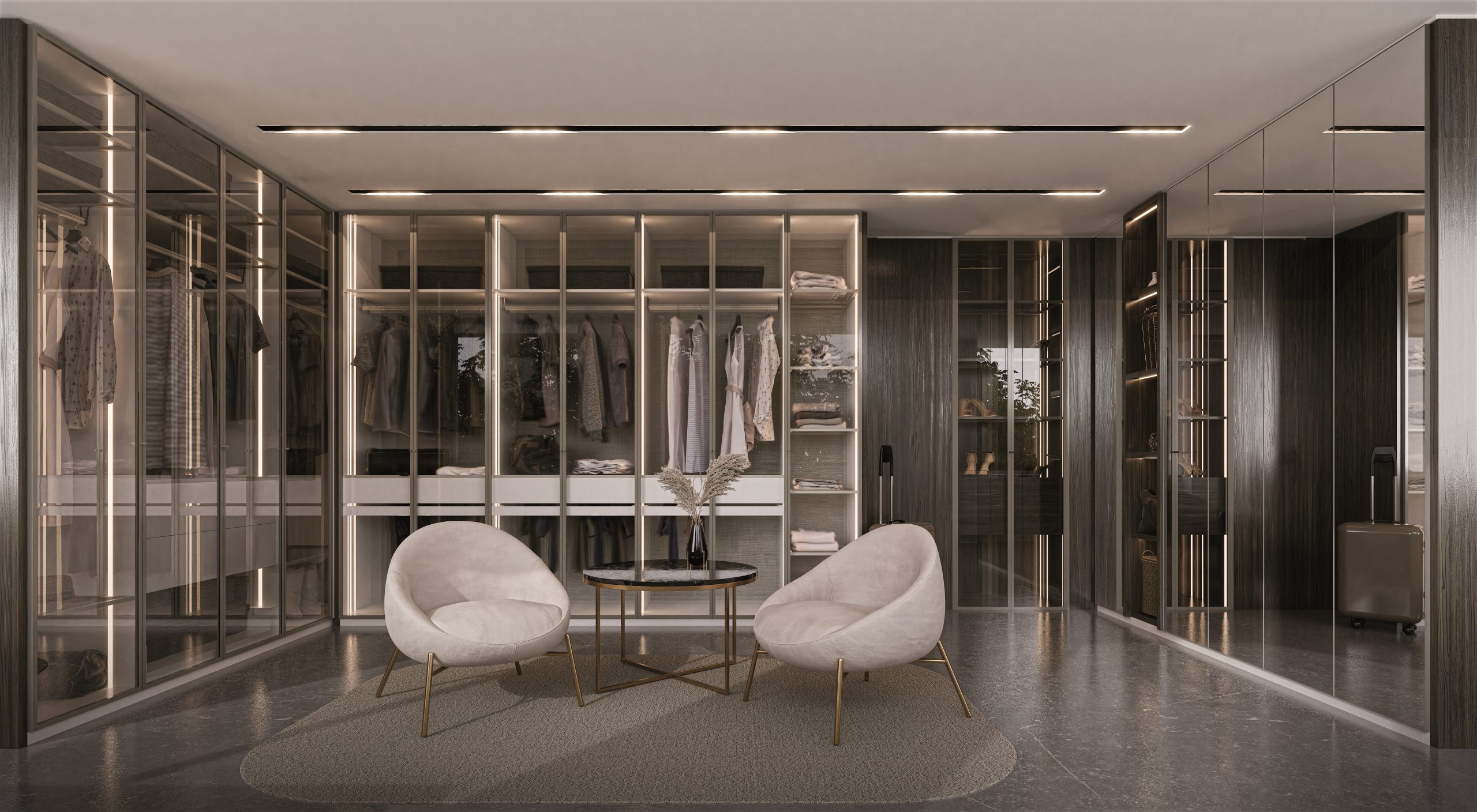 Tego rodzaju garderoba sprawdzi się zarówno jako część sypialni, jak i samodzielne pomieszczenie na ubrania.