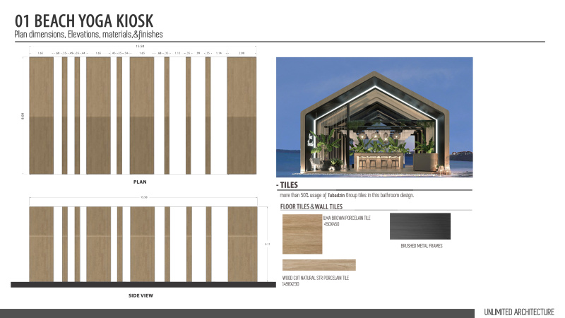 Trzecie miejsce zajęła Laila Magdy z Egiptu, której projekt domku jogi na plaży zaskakuje eklektyzmem struktur liniowych. Formy te wprowadzają w relaksujący, kojący nastrój, dbając o pozytywne wibracje praktykujących. Znalazły się tu płytki z kolekcji Wood.