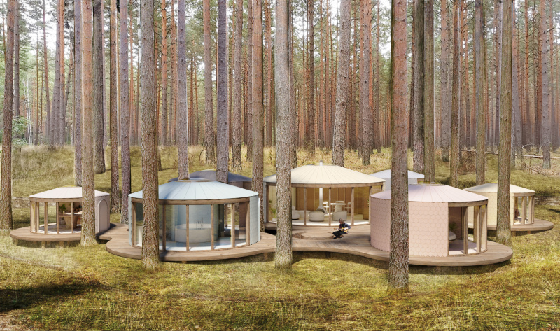 Drugie miejsce przypadło Polce, która zaproponowała niezwykle innowacyjną formułę architektoniczną. W swojej wizji Monika Kalita odniosła się do bogactwa naturalnych struktur oraz materiałów, które stają się integralną częścią projektu. Kompleks siedmiu kopułowych budynków zbudowanych na specjalnym drewnianym podeście, podkreśla integralność natury i człowieka. Do udekorowania opływowych brył laureatka wykorzystała płytki z kolekcji Doroty Koziary Cielo e Terra.