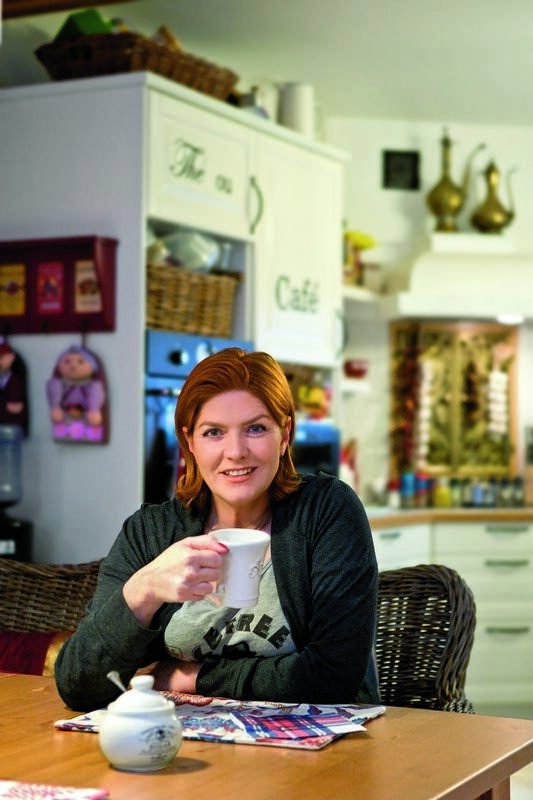 KD: Tak, tym bardziej, że obok są „łowickie” pasy na ścianie. A jednak tworzą harmonijną całość z nowoczesnymi meblami i oddają charakter starych. W swoich poprzednich domach miałam więcej antyków – do tego mi nie pasują. Te wnętrza same domagały się rustykalnego klimatu: miały drewniane belki na suficie, piękne ramy w oknach, kominek. Urządziłam je więc trochę w stylu szwedzkim, a trochę prowansalskim. Nie chcę mieć domu „na pokaz”, tylko do życia. Taki, w którym się gotuje, rozmawia, ogląda telewizję, czyta książki, a pies gania się z kotem.