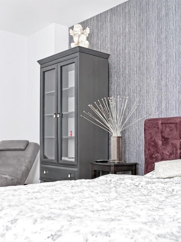 To są kolory, które lubię, i z którymi czuję się dobrze. Zresztą, nie mam wyłącznie ścian w tych barwach, ale też ubrania, samochód – nawet moja ukochana amstafka Tara jest grafitowa. Rok temu, gdy mieszkanie było urządzane, te kolory były mi szczególnie bliskie, teraz może dodałabym więcej fioletu, ale generalnie niewiele bym w nim zmieniła.