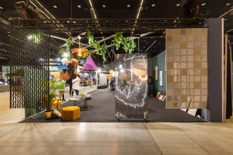 Wielkość stoiska Muraspec na tegorocznych targach 4 Design Days i otwarty układ pozwoliły na swobodną ekspozycję produktów. Dzięki temu pięknie wybrzmiała forma ażurowych filcowych paneli akustycznych, które bardzo lubią projektanci wnętrz oraz poliwęglanowych paneli Bencore. Filcowe „wycinanki” to idealne, mobilne akustyczne rozwiązanie do nowoczesnego biura: atrakcyjna ażurowa forma pozwala na przenikanie światła i wzroku, jednocześnie pozostawiając wrażenie otwartej przestrzeni i zapewniając niezbędną w tym miejscu prywatność. Panele wykonane są w 100 z poliestru, w tym minimum 60% to materiał pochodzący z recyklingu oraz 10% z biomasy. Lekkie, nietoksyczne ścianki dostępne są w gamie atrakcyjnych kolorów i wzorów. Zainteresowaniem projektantów wnętrz biurowych cieszyły się filcowe lampy, które świetnie uzupełniają inne akustyczne rozwiązania proponowane przez Muraspec. Nowe formy abażurów oraz piękne kolory ekologicznego filcu zachwycały odwiedzających ekspozycję.