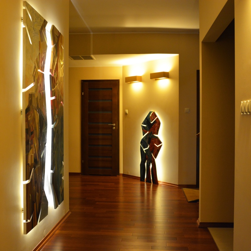 IMA light jest odpowiedzią na moje długie poszukiwania delikatnego oświetlenia na ścianę. Bardzo nie chciałam żeby to były zwykłe kinkiety. Wymarzyłam sobie coś co będzie niebanalną ozdobą, zharmonizowaną z całością wnętrza dekoracją, a jednocześnie będzie dawać intymne światło. Wiemy jak bardzo światło buduje całe pomieszczenie, tworzy nastrój, klimat. Jeśli więc obraz może przy okazji być funkcjonalny, to myślę, że jest to strzał w dziesiątkę.