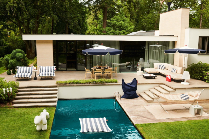 W słoneczne dni zadbajmy też o odrobinę cienia, a zarazem dodajmy przestrzeni intymności – dobrym rozwiązaniem są stylowe parasole ogrodowe czy gustowne żagle.