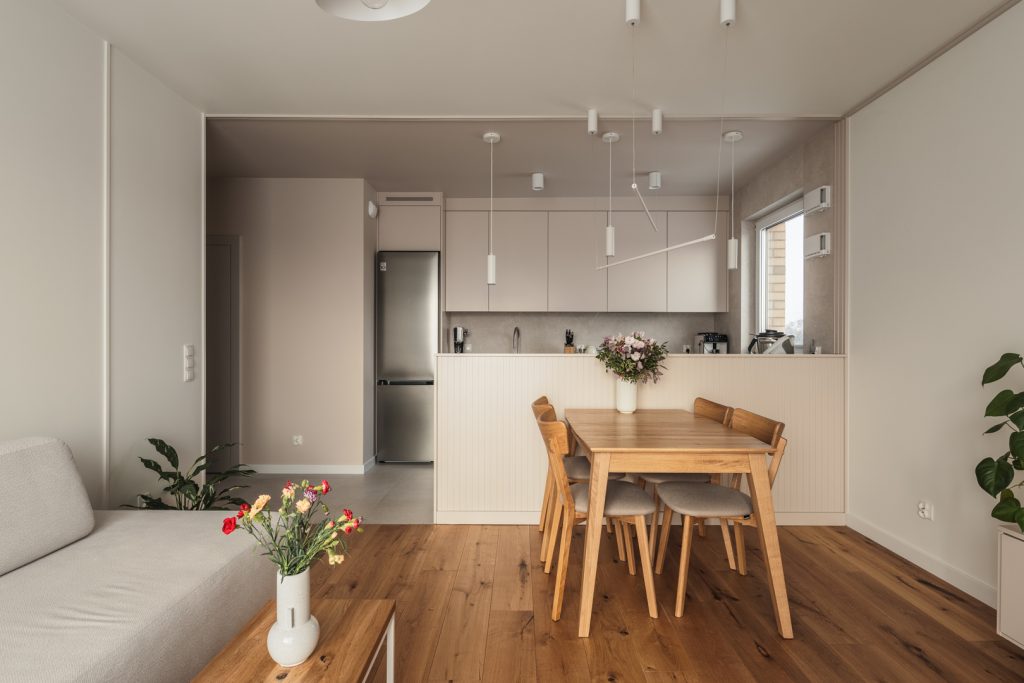 Ciepły minimalizm, świadome operowanie światłem i wyraźne strefowanie przestrzeni – tak można opisać najnowszy projekt Izabeli Kutyły-Sztuk, architektki i właścicielki studia INK Architektura. 64-metrowe mieszkanie na warszawskim Mokotowie to wnętrze zaprojektowane jako spokojna, funkcjonalna oaza dla młodej pary pracującej zdalnie. To przestrzeń, która redukuje bodźce, ale nie rezygnuje z wyrazistych detali i dopracowanych rozwiązań.