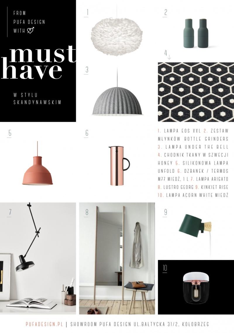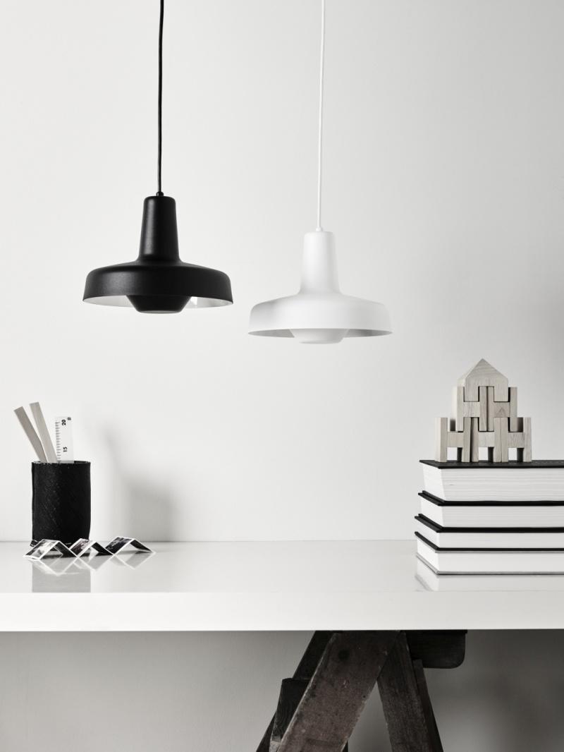 Wnętrza skandynawskie charakteryzuje również typograficzny duet black & white. Graficzny i geometryczny podział przestrzeni wpływa na odczucie porządku, harmonizuje i porządkuje wnętrze. Innowacyjne, trudne do porównania z tradycyjnymi dywanami chodniki Pappelina to szwedzki, kultowy sposób na aranżowanie podług. Dywany utkane są z miękkich wstążek z tworzywa sztucznego. Gigantyczna ilość rozmiarów i wzorów pozwala dowolnie kreować kompozycje we wszystkich pomieszczeniach, w których będą narażone na intensywne użytkowanie. Czarno na białym – liniowa, geometryczna jest seria lamp wiszących, podłogowych, stołowych i sufitowych Arigato Grupa Products.