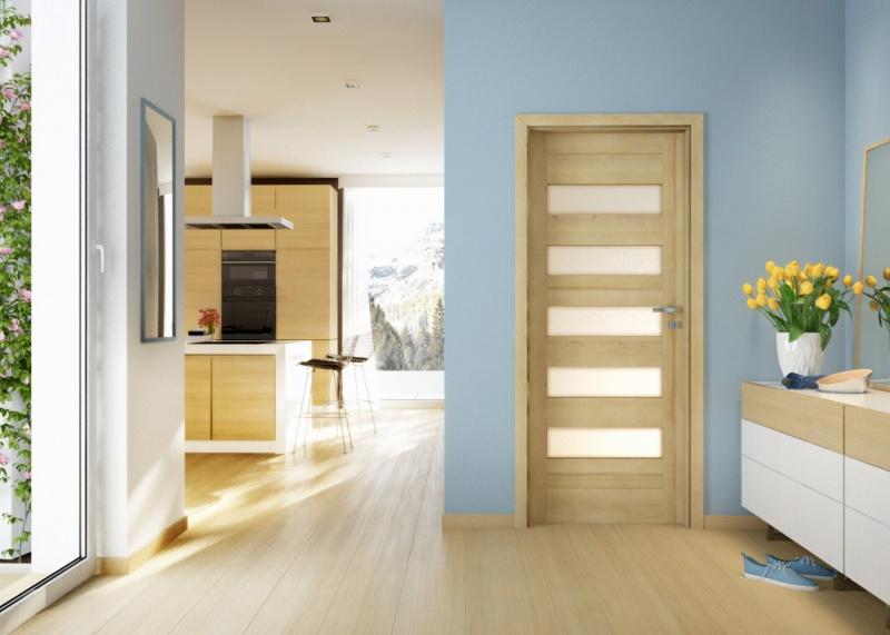 O ile zmiana połogi zwykle wiąże się z dużym zamieszaniem, to drzwi wewnętrzne wymienimy szybko i bez zbędnego bałaganu. Nowe skrzydła drzwiowe wcale nie muszą być drogie. Możemy wybrać np. proste drzwi płaskie z kolekcji Norma Decor firmy Invado. Kosztują niewiele ponad 100 zł, a duży wybór kolorów i oklein pozwoli bez problemu dopasować je do istniejącej podłogi czy ogólnej kolorystyki wnętrza. Białym, gładkim drzwiom możemy także nadać oryginalny charakter oklejając je taśmą dekoracyjną, np. w kolorze czarnym.