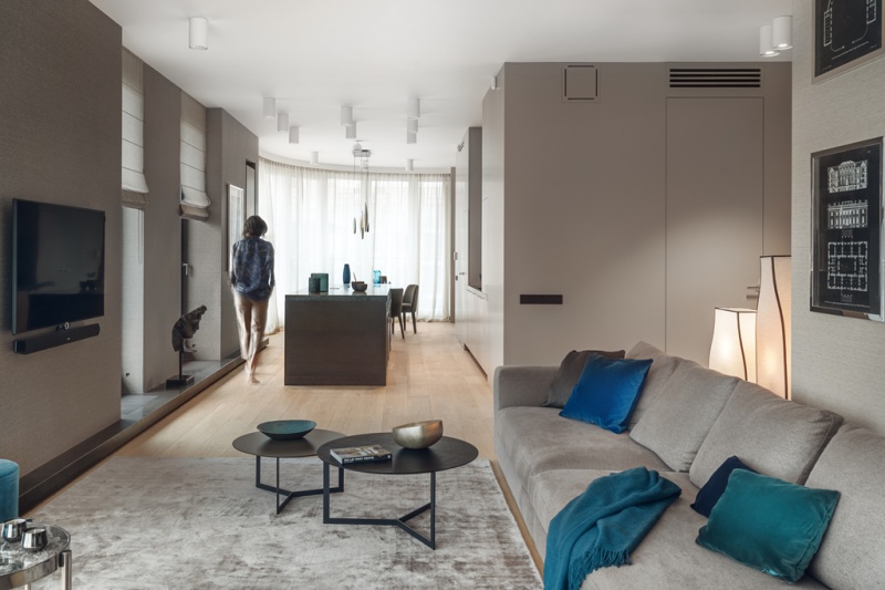 Właściciele zdecydowali się na zaproponowaną przez projektantkę neutralną i bezpieczną kolorystykę. Jak przystało na styl paryski dominują szarości, beże, złamana biel oraz akcenty w postaci granatów (w sypialni). — Inspirowałam się prostą formą ubraną w elegancję apartamentów Nowego Jorku, ale z duchem paryskiej kolorystyki – mówi architektka. Rodzina rozsmakowuje się w nowym mieszkaniu, które jak zgodnie twierdzą, zostało zaprojektowane z wielkim wyczuciem. Ten elegancki, nastrojowy apartament jest odzwierciedleniem ich charakterów i pasji.