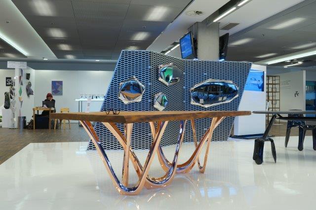 Konstruując stoły i siedziska takie jak stołek „Plopp” lub „Chippensteel”, czy zjawiskowe lustra, zespół Oskara Zięty wykorzystuje możliwości technologii Freie Innendruck Umformung. Patrząc na bioniczny, generatywnie projektowany stół z kolekcji „G-Tables” – nie sposób odwrócić się od skojarzenia z kosmiczną stacją badawczą. A to nie stacja kosmiczna, tylko dizajnerskie studio projektowe. Chociaż też wykorzystuje do pracy stację, tyle że HP ZBook Studio.