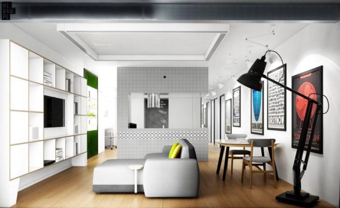 Architekci z pracowni 81.WAW.PL udowodnili, że odrobina odwagi i niesztampowego podejścia do aranżacji wnętrza może dać spektakularny efekt. Doskonałym przykładem jest 80-metrowe mieszkanie na warszawskiej Saskiej Kępie, w którym bazą do aranżacji były surowe materiały i odcienie szarości. Duży metraż pomieścił przestronny salon, kuchnię, trzy sypialnie oraz dwie łazienki. Jednak właścicielom mieszkania brakowało miejsca do pracy. Okazało się, że odpowiednie rozplanowanie pozwoliło na wygospodarowanie dodatkowej przestrzeni na miejsce w części dziennej.