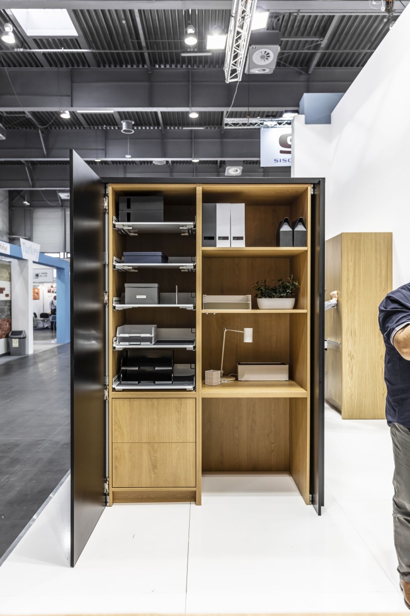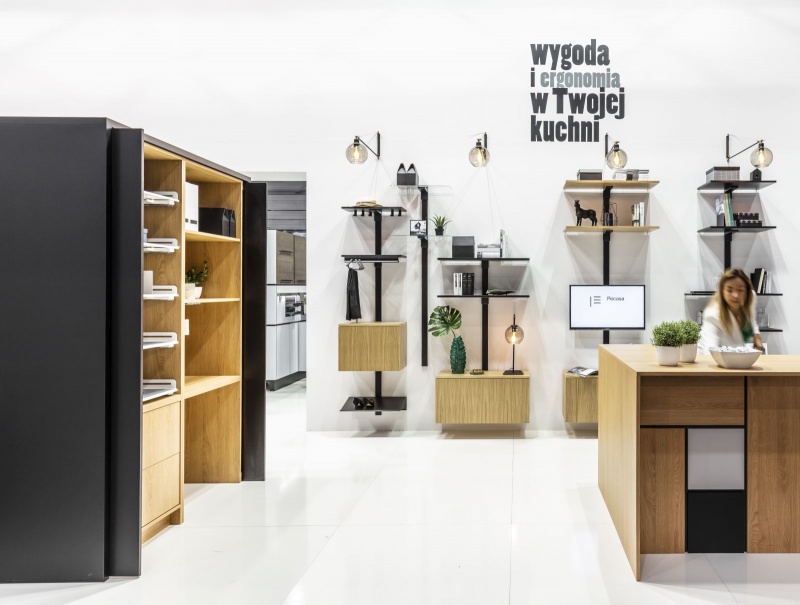 Stoisko PEKI odsłoniło także kulisy urządzania funkcjonalnego biura. System HAWA, nowość w portfolio marki, pozwala na pomysłową aranżację tego typu przestrzeni, bez względu na ich rozmiar czy panujące w nich warunki. Umożliwia powstanie kompaktowego biura nawet w niewielkim pomieszczeniu. Ogromnym zainteresowaniem cieszyło się również zaprezentowane eleganckie wyposażenie szuflad wykonane z naturalnego drewna.