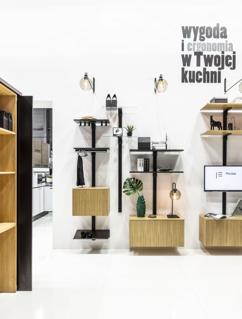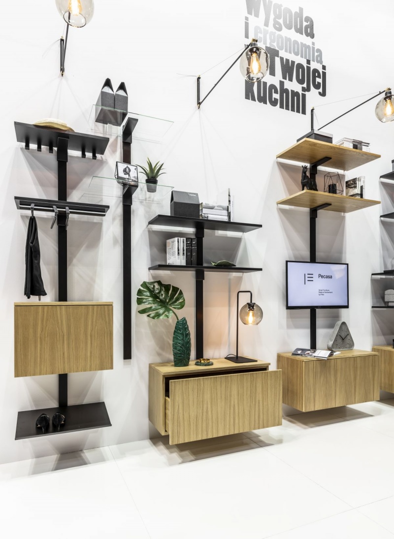 Funkcjonalne i stylowe rozwiązania do wnętrz to domena PEKI. Ofertę marki wzbogaciły wyjątkowe nowości niezbędne w tego typu przestrzeniach. Jednym z nich jest innowacyjny system Pecasa, na przykładzie którego pokazano aranżację salonu i wybrane dodatki do garderoby. Produkt umożliwia indywidualne zaprojektowanie regałów i półek oraz daje zupełnie nowe możliwości niestandardowego i funkcjonalnego wystroju nie tylko salonu i garderoby, ale także sypialni, kuchni czy przedpokoju. W zależności od gustu i oczekiwań klienta pozwala stworzyć ciekawą, przestrzenną i lekką konstrukcję, idealną do przechowywania pamiątek, książek czy zamontowania stelaża do telewizora. Uczestnicy targów otrzymali również możliwość poznania praktycznych regałów Smart Cube. Dostępne gotowe oraz rozbudowane moduły wpiszą się w indywidualne potrzeby użytkownika. Dzięki ergonomicznemu kształtowi i atrakcyjnej estetyce, znajdą zastosowanie w każdym pomieszczeniu.