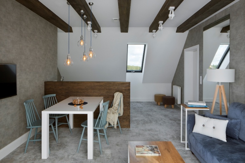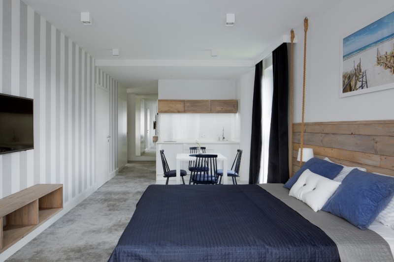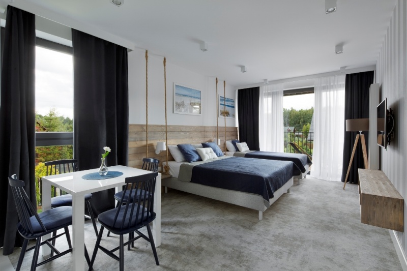 KLONOVA to domowa atmosfera sprzyjająca rodzinnemu wypoczynkowi połączona z dobrym smakiem. Wnętrza od HOLA Design oddają nadmorski klimat otoczenia poprzez elementy wystroju jak żeglarskie liny, deski wytrawione przez sól morską, a także unikalne lampy stojące z podstawami z kłód drewna wyrzuconych na brzeg przez morskie fale. Marynistycznemu charakterowi sprzyja także kolorystyka – granaty, biele, kolory ziemi połączone z naturalnymi materiałami wykończeniowymi jak ciepłe drewno czy ceglane ściany w palecie szarości.