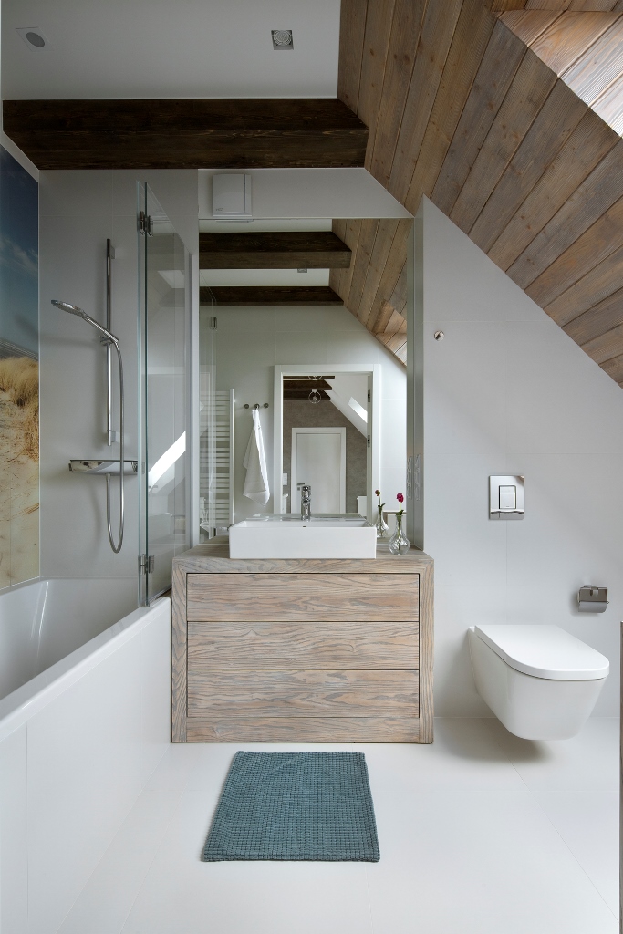 Prosta, lecz elegancka bryła budynku została stworzona w nawiązaniu do regionalnej architektury. Drewno bejcowane na czarno czy odwołujące się do nadmorskich spichlerzy elewacje pokryte ręcznie wyrabianymi ceglanymi płytkami, kontrastują z grafitową blachą pokrywającą dach i portal wejściowy. Przemyślana architektura pensjonatu zwraca uwagę także ze względu na swoją mobilność. Wnętrze podzielono na przestronne pokoje o jednakowej szerokości, które można łączyć ze sobą w zespoły. Tak samo jest z przegrodami tarasów, które są zaprojektowane jako składane, aby możliwe było przejście między pokojami. Na poddaszu znajdują się najwygodniejsze apartamenty z przeszklonymi tarasami wciętymi w bryłę dachu, z których rozpościera się piękny widok w stronę morza – wspaniałe miejsce do podziwiania malowniczych zachodów słońca.