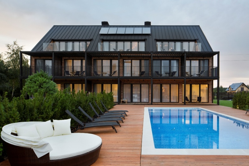 KLONOVA to również ogród sprzyjający towarzyskim rozrywkom. Inwestor projektu był otwarty na innowacje – w efekcie, niewątpliwym udogodnieniem i atrakcją obiektu jest basen ogrzewany energią paneli słonecznych umieszczonych na dachu, przystosowany również dla najmłodszych. Z myślą o nich zaaranżowano także zewnętrzny plac zabaw. Przytulny i domowy klimat pensjonatu pokochali już pierwsi goście. Więcej informacji: http://klonova.pl/bialoogora/.