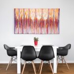 Salon łączy się z oszczędnie urządzonym aneksem kuchennym. Przestrzeń do przyrządzania posiłków wydziela wysoki blat, przy którym można też wygodnie usiąść na hokerach, popijając poranną kawę lub przegryzając coś między wypadami na miasto. Jest to też idealne miejsce dla gości, w czasie gdy gospodarze przygotowują poczęstunek. Szafki z prostymi frontami stanowią zabudowę całego aneksu, tworząc wiele schowków na wszystkie kuchenne naczynia, dzięki czemu każda rzecz ma swoje miejsce i nic nie zaburza porządku panującego także w tej części mieszkania. Zamiłowanie pary studentów do aktywnego życia przenosi się na niewielkie zainteresowanie gotowaniem wymyślnych potraw, więc nadrzędnym celem wystroju kuchennego jest jego praktyczność. Przedłużeniem aneksu jest kącik jadalniany, w którym mieszkańcy najczęściej jedzą posiłki. Wydaje się on może niewielki, jednak stół jest rozkładany, więc w razie wizyty znajomych zmieści się przy nim całkiem sporo osób. Główną ozdobą tego miejsca jest obraz w ognistych barwach, tak rzadko tu się pojawiających. Właśnie to dzieło oraz niewielkie detale, jak doniczka i świeczniki, przełamują linię kolorystyczną aranżacji i urozmaicają wnętrze, zapobiegając monotonii.