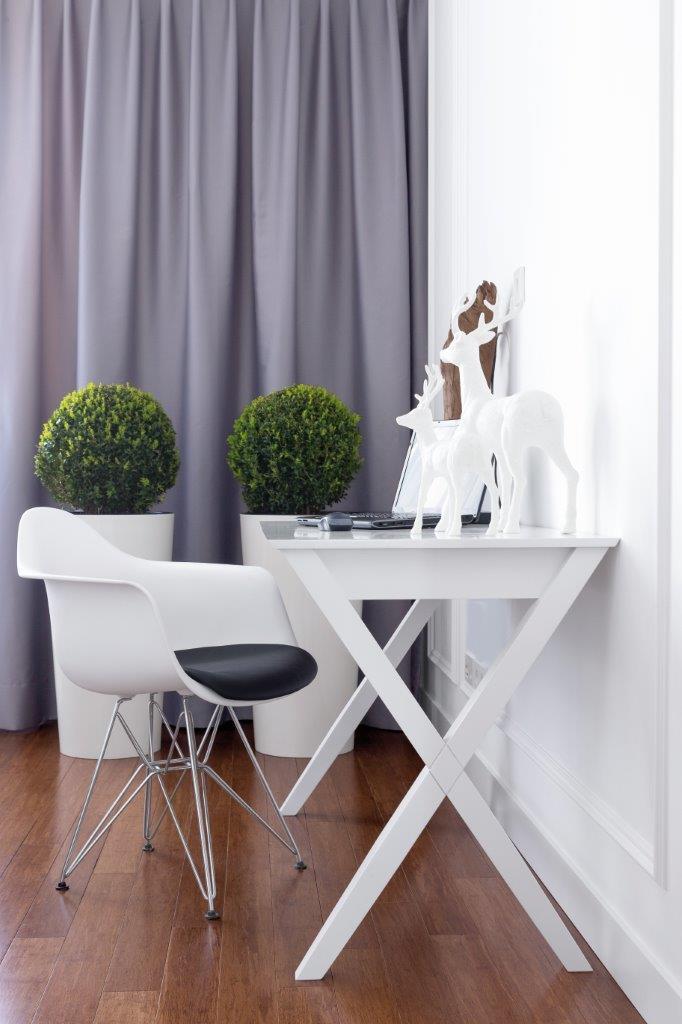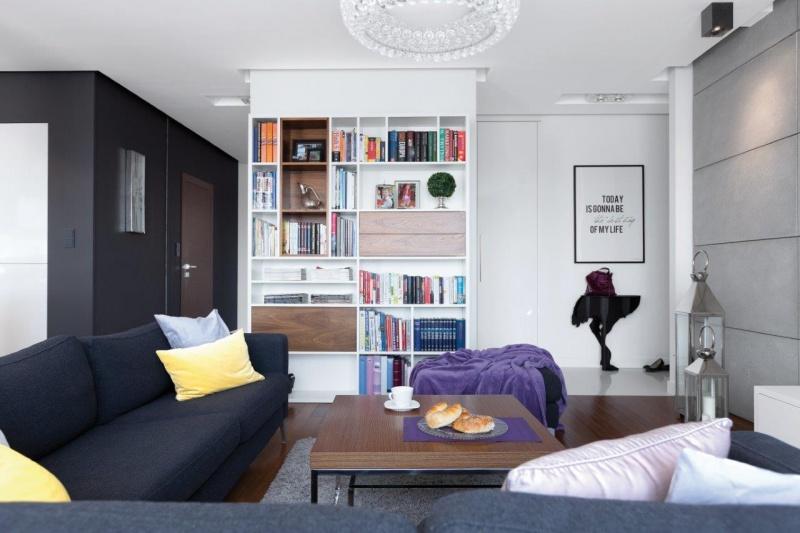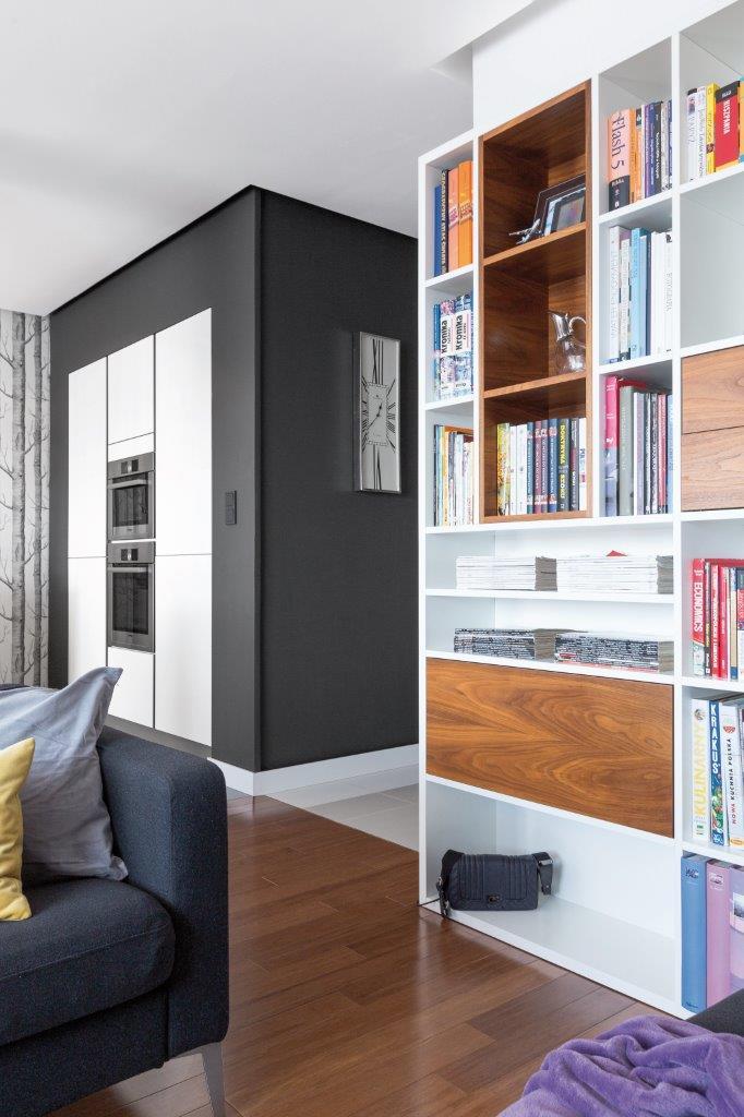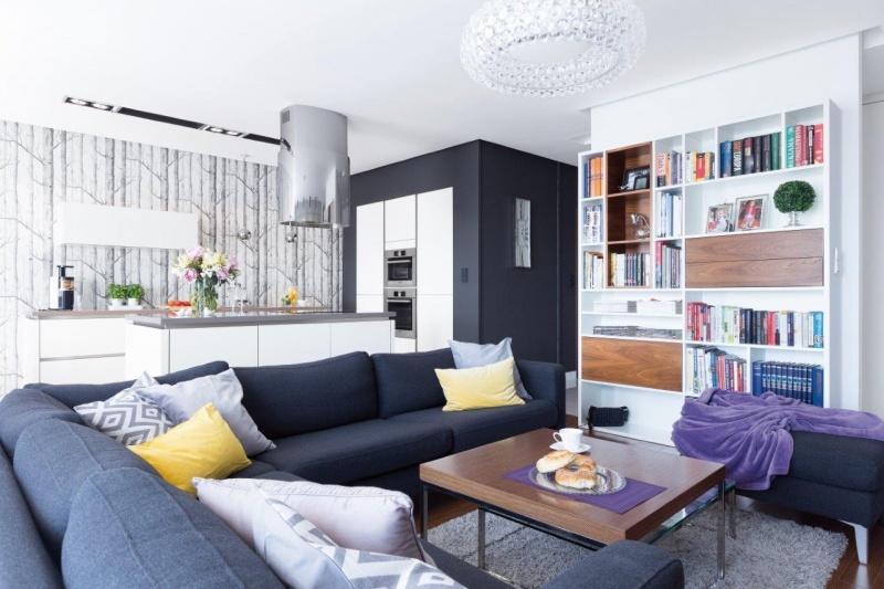 Nowoczesne mieszkanie na warszawskim osiedlu zaprasza nie tylko architekturą, ale i usytuowaniem wśród miejsc przyjaznych młodym rodzinom – park i plaża dla dzieci, kawiarenki czy ścieżka rowerowa do pobliskiego Powsina, które zachęcają do aktywnego spędzania czasu.