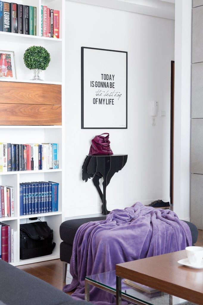 120-metrowe mieszkanie zamieszkuje 4-osobowa rodzina. Pani Małgorzata, która od kilku lat realizuje pasję projektowania wnętrz, jej mąż, pan Darek, od 12 lat zajmujący się marketingiem oraz dzieci Natalia i Szymon. Zakup mieszkania na jeszcze rozwijającym się osiedlu wyniknął z faktu, że w sąsiedztwie mieszkają młodzi ludzie, wśród których pani Małgorzata i pan Darek szybko znaleźli przyjaciół. Mimo podjęcia decyzji o zakupie właśnie tego lokum nie obyło się jednak bez pewnych metamorfoz. Obecna kuchnia z jadalnią była zaplanowana przez dewelopera jako sypialnia, a pokój syna wg planu miał być kuchnią, powiększona została także jedna z łazienek. Mieszkanie powstawało etapami. Na początku miało mieć bardzo loftowy i minimalistyczny charakter stąd też betonowa okładzina na jednej ze ścian. Z czasem celowo przybywało w nim coraz więcej elementów i dekoracji odbiegających od klimatu loftów, który okazał się dla domowników zbyt zimny i ponury. Wprowadzony został kolor i wiele ozdobnych detali.