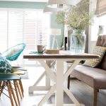 Kolorystyczną bazą wnętrza jest biel i taupe, a na tym tle można dobierać dodatki w innych barwach, zmienianych co parę miesięcy. Ponieważ małżeństwo lubi kreatywne aranżacje, wygląd salonu jest odświeżany wraz z nadejściem kolejnej pory roku. Dzięki temu dom „żyje”, a jego właściciele na pewno nie znudzą się wyglądem swojego azylu. A co w nim najbardziej lubią? Jako odpowiedź pani Maryla wskazuje zrobioną przez siebie stojącą na kominku tablicę z napisem, który można przetłumaczyć: „To, co najbardziej kocham w moim domu, to osoba, z którą go dzielę”.