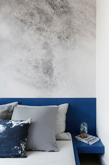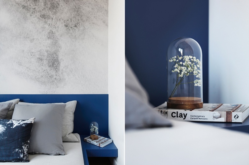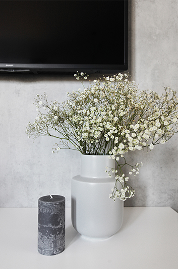 – Chciałyśmy przełamać geometrię zaprojektowanych przez nas mebli czymś organicznym. Nie chciałyśmy zbytnio eksperymentować we wnętrzu, ale zależało nam na efekcie wow. Dlatego postawiliśmy na nietypowy materiał jakim jest okładzina z laminatu betono-podobnego oraz wykonane z tego samego materiału drzwi. Dzięki temu ściana wygląda bardzo efektownie – mówi Daria Skoczylas ze studioLOKO.