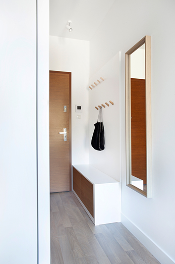 Pomimo niedużego metrażu, udało się jednak uzyskać efekt przestronnej przestrzeni. Zasługę miały w tym także drzwi do sufitu. Kolejny raz projektantki postawiły na sprawdzonych producentów i w ich realizacji możemy zobaczyć drzwi marki INTER DOOR. Czym powinniśmy się kierować przy wyborze drzwi? Czy Klienci nadal bardziej zwracają uwagę na ich wygląda, czy już kwestie funkcjonalności, jakości materiału są bardziej doceniane?