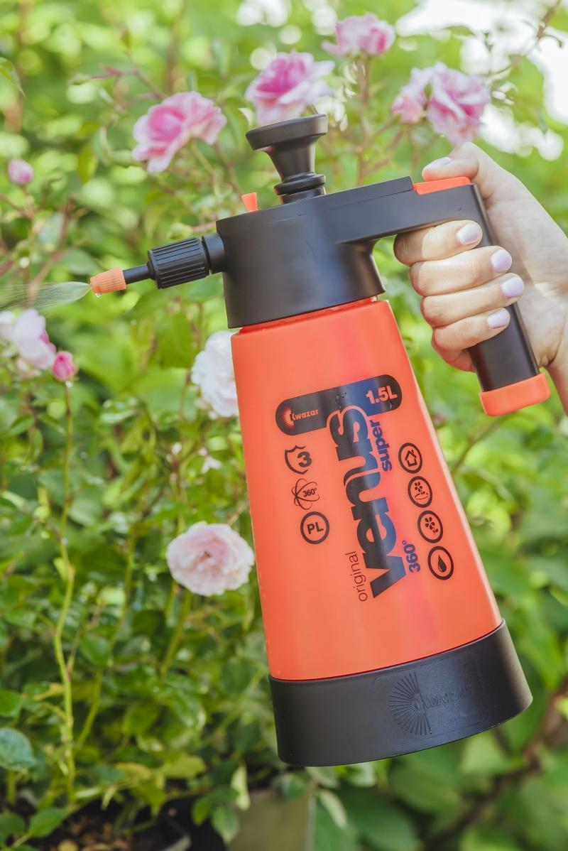 Najbardziej praktyczne oraz najskuteczniejsze są nawozy rozpuszczane w wodzie i podawane podczas podlewania. Aby nawóz został równomiernie dostarczony do podłoża przygotowana mieszanka powinna być równomiernie i delikatnie dozowana. Najlepiej sprawdzi się w tym przypadku opryskiwacz ciśnieniowy Venus Super 360. To niezawodne urządzenie, które dzięki wbudowanej pompce umożliwia uzyskanie długotrwałego i równomiernego strumienia. Nowa konstrukcja pompki, zapewnia większe zawirowanie cieczy, co w konsekwencji daje bardziej efektywny oprysk. Dodatkowo regulowana dysza pozwala na ustawienie odpowiedniego stopnia jej rozpylenia.