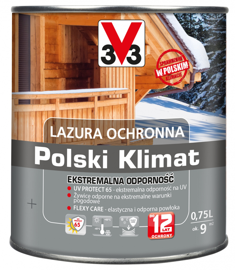 Do wyboru mamy 3 warianty rozwiązania V33 – LAZURĘ OCHRONNĄ POLSKI KLIMAT IMPREGNUJĄCO-DEKORACYJNĄ, LAZURĘ OCHRONNĄ POLSKI KLIMAT WYSOKA ODPORNOŚĆ oraz LAZURĘ OCHRONNĄ POLSKI KLIMAT EKSTREMALNA ODPORNOŚĆ.