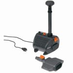 W komplecie regulator wydajności, pompa, przedłużka teleskopowa i 3 dysze fontannowe. Posiada bezstopniowo regulowaną długość przedłużki teleskopowej (14 – 24 cm.) umieszczonej na przegubie, służącej dopasowaniu położenia pompy do kształtu podłoża. Bezstopniowa regulacja przepływu daje indywidualne ustawienie pracy pompy. Wyposażony w drugie, oddzielne regulowane wyjście. Gwint 21 mm (G 1/2). Długość kabla 10 m.