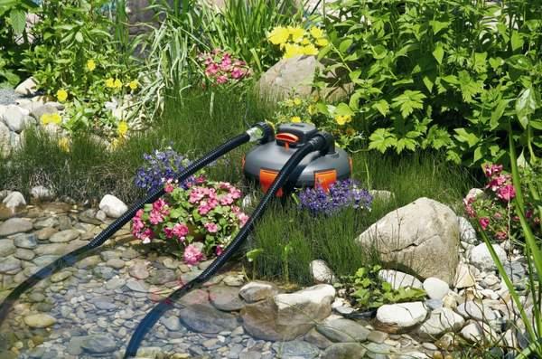 Dzięki pompom fontannowym GARDENA wraca życie do oczka wodnego, a jego woda natlenia się. W przypadku małych oczek wodnych służą również do zapewnienia cyrkulacji wody. Aby do tego celu wykorzystać pompę należy podłączyć wąż do drugiego, nie używanego wyjścia pompy fontannowej, zdjąć dyszę fontannową a następnie zamknąć to wyjście.